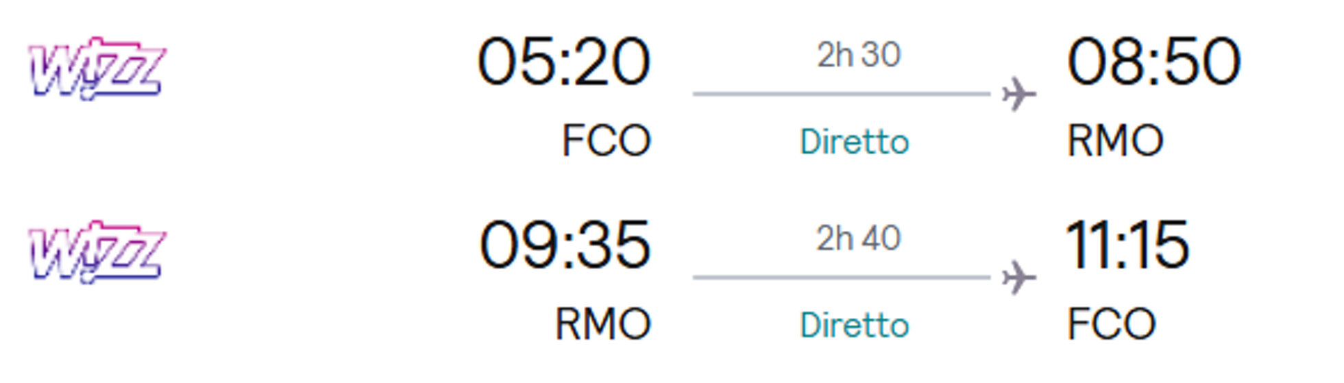 09:35 RMO 11:15 FCO